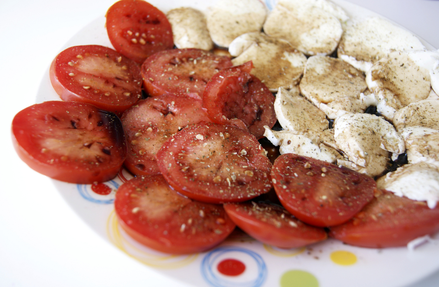 Mittags: Leichter Mozarella mit Tomaten und Balsamico. Gewürzt mit Tomaten-Mozarella-Salz und italienischen Kräutern.